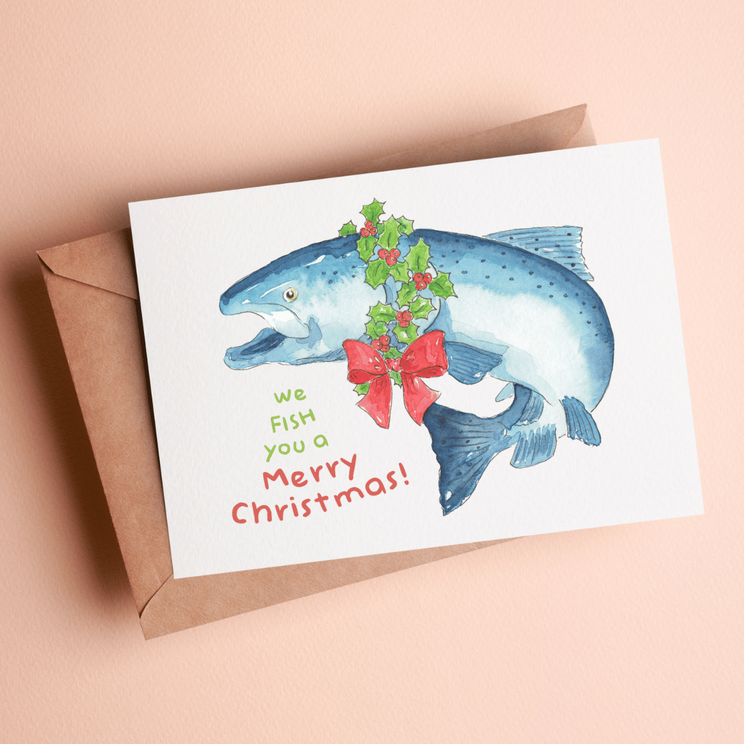 "We Fish You A Merry Christmas" King Salmon Fish Funny Punny Christmas Greeting Card