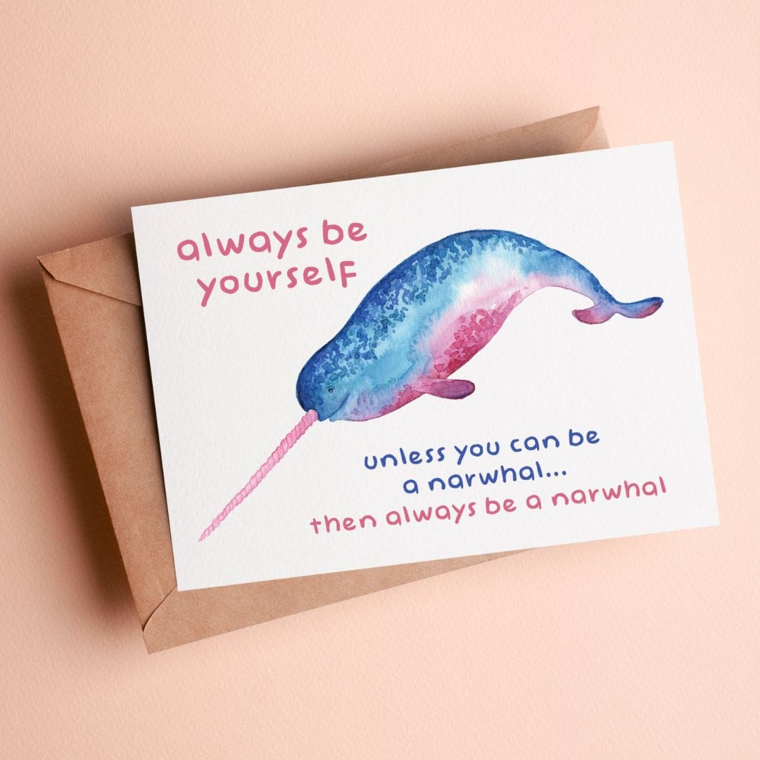 Always Be Yourself, Unless You Can Be a NARWHAL, then always Be a Narwhal - Watercolor Card - Encouragement - Friendship - Love - Funny